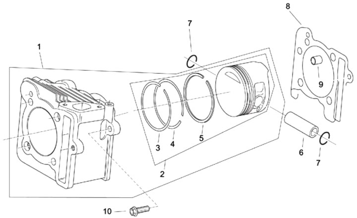 Piston ring -PIAGGIO- Leader 125cc - Ø=57.0mm (upper)
