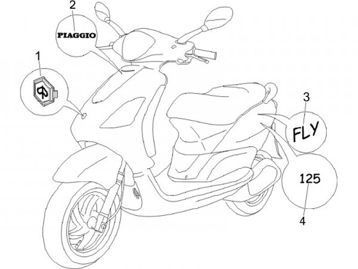 Sticker emblem Piaggio -PIAGGIO- Vespa Ciao, Piaggio TPH 50-125, X8 125-250, X9 125-500, Zip II 50-125, Zip 50 SP2, Fly 50-150, Liberty 50-125, MP3 300