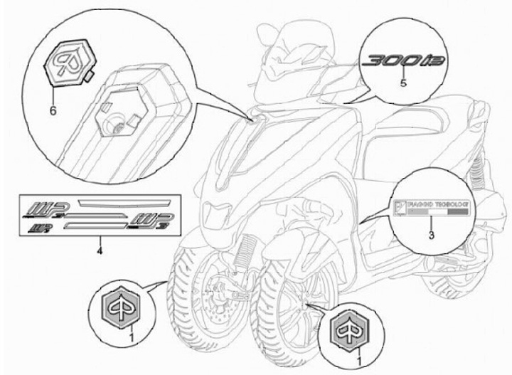 Badge -PIAGGIO- Piaggio hexagon (42x48mm)- Piaggio Beverly, Beverly Cruiser, Beverly MIC, Beverly RST, Beverly Sport Touring, Beverly Tourer, Carnaby, Fly, Liberty, Liberty Sport, Liberty Teens, MP3, MP3 Yourban, X7, X8, X10, X Evo