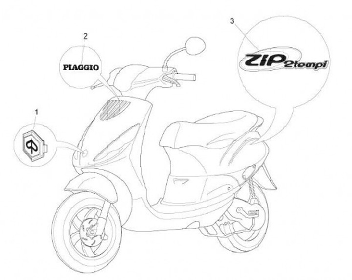 Sticker emblem Piaggio -PIAGGIO- Vespa Ciao, Piaggio TPH 50-125, X8 125-250, X9 125-500, Zip II 50-125, Zip 50 SP2, Fly 50-150, Liberty 50-125, MP3 300