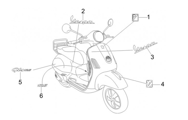 Luggage compartment label 125 -PIAGGIO- Vespa GTS 125 - self-adhesive