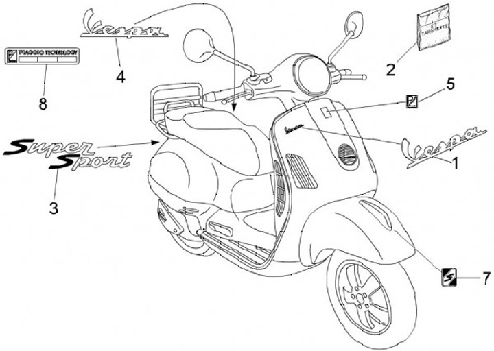 Badge side panel -PIAGGIO- Vespa - Vespa PX, GT125, GT200, Vespa GTL125, GTL200, Vespa GTS125, GTS250, GTS300, Vespa GTV 125-300, Vespa LX50, LX125, LX150, Vespa LXV50, LXV125-150, Vespa S50, S125, S150 - anthracite, self-adhesive (150x50mm)