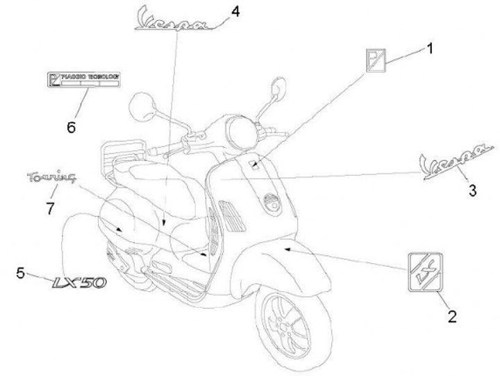 Badge for toolbox -PIAGGIO- Touring - Vespa GTS 300 (ZAPM45200, ZAPM45202), Vespa GTS Super 125 (ZAPMA3100, ZAPMA3200), Vespa GTS Super 300 (ZAPM45200, ZAPMA3300), Vespa LX 125 (ZAPM68300, ZAPM68100, ZAPM68303), Vespa LX 150 (ZAPM68400), Vespa LX 50 (ZAPC