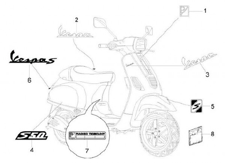 Badge frame rear -PIAGGIO- Vespa S- Vespa S 50-125