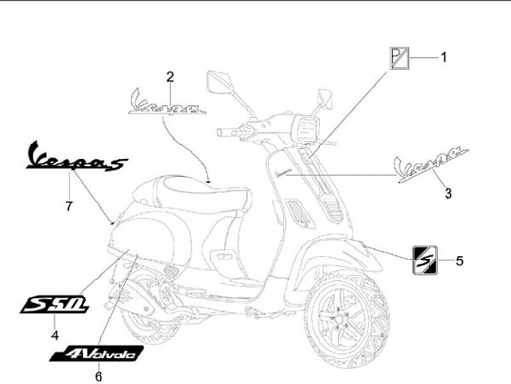 Badge frame rear -PIAGGIO- Vespa S- Vespa S 50-125