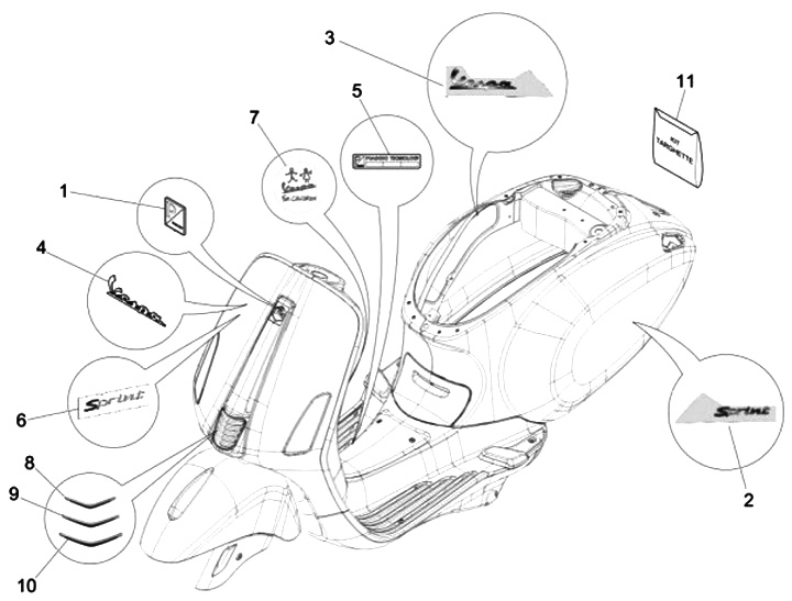 Badge -PIAGGIO- Vespa for children - Vespa GTS 125 (ZAPMA3100, ZAPMA3200, ZAPMA3700), Vespa GTS 150 (ZAPMA3200, ZAPMA3100), Vespa GTS 250 (ZAPM45100), Vespa GTS 300 (ZAPM45200, ZAPM45202, ZAPMA3300), Vespa GTS HPE 300 (ZAPMA3600), Vespa GTS Super 125 (Z