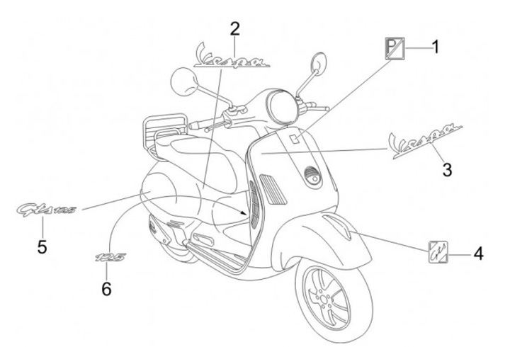 Luggage compartment label 125 -PIAGGIO- Vespa GTS 125 - self-adhesive