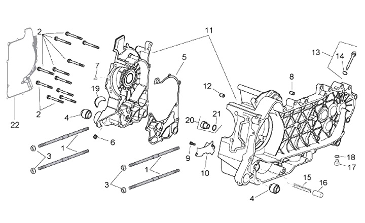 Crankcase gasket -PIAGGIO- Vespa GT 250 (ZAPM45102), Vespa GT L 125 (ZAPM31101), Vespa GT L 200 (ZAPM31200), Vespa GTS 125 (ZAPM31300), Vespa GTS 250 (ZAPM45100, ZAPM45101), Vespa GTS 300 (ZAPM45200, ZAPM45202, ZAPMA3300), Vespa GTS HPE 300 (ZAPMD310), Ve