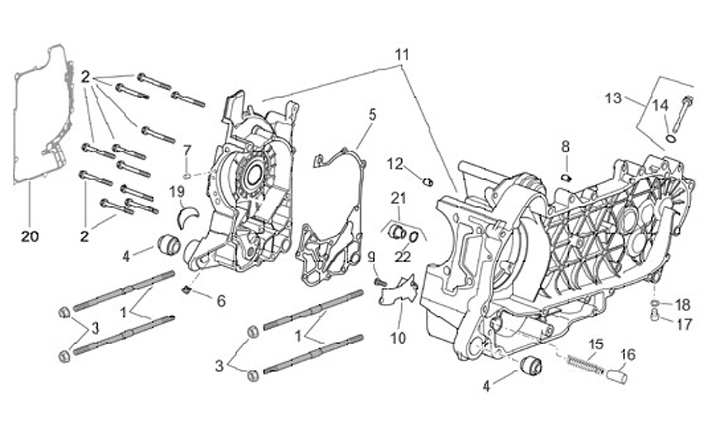 Engine casing -PIAGGIO, category 1- Vespa GT 250 (ZAPM45102), Vespa GTS 250 (ZAPM45100), Vespa GTS 300 (ZAPM45200, ZAPM45202, ZAPMA3300), Vespa GTS Super 300 (ZAPM45200, ZAPM45202, ZAPMA3300), Vespa GTS Super Sport 300 (ZAPM45200), Vespa GTV 300 (ZAPM4520