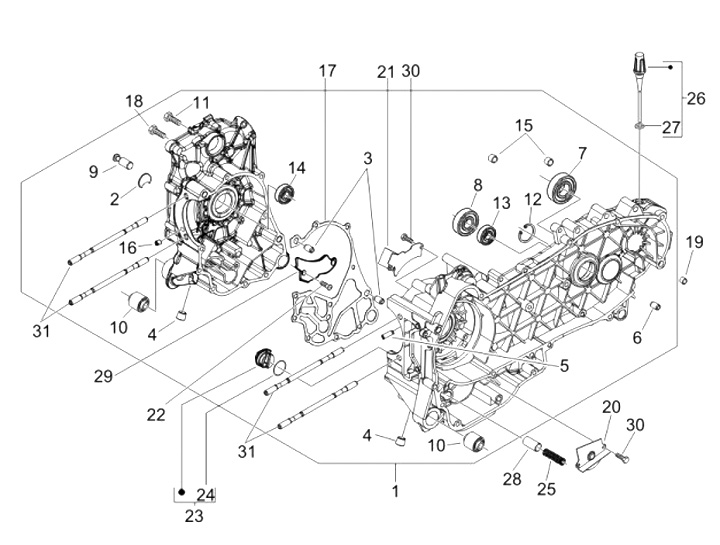 Crankcase gasket -PIAGGIO- Vespa GT 250 (ZAPM45102), Vespa GT L 125 (ZAPM31101), Vespa GT L 200 (ZAPM31200), Vespa GTS 125 (ZAPM31300), Vespa GTS 250 (ZAPM45100, ZAPM45101), Vespa GTS 300 (ZAPM45200, ZAPM45202, ZAPMA3300), Vespa GTS HPE 300 (ZAPMD310), Ve
