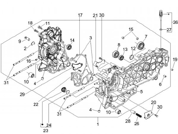Crankcase gasket -PIAGGIO- Vespa GT 250 (ZAPM45102), Vespa GT L 125 (ZAPM31101), Vespa GT L 200 (ZAPM31200), Vespa GTS 125 (ZAPM31300), Vespa GTS 250 (ZAPM45100, ZAPM45101), Vespa GTS 300 (ZAPM45200, ZAPM45202, ZAPMA3300), Vespa GTS HPE 300 (ZAPMD310), Ve