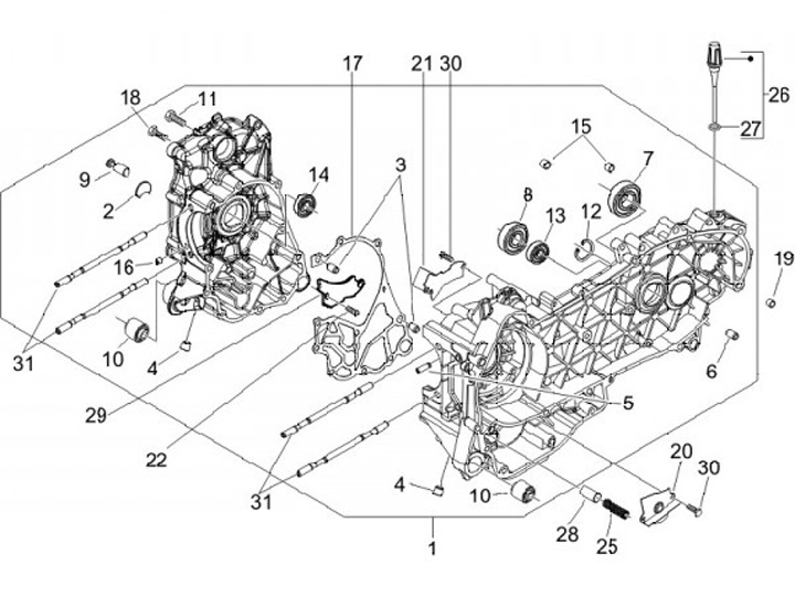 Oil separation bulkhead -PIAGGIO- Vespa GT 250 (ZAPM45102), Vespa GT L 125 (ZAPM31100, ZAPM31101), Vespa GT L 200 (ZAPM31200), Vespa GTS 125 (ZAPM31300), Vespa GTS 250 (ZAPM45100, ZAPM45101), Vespa GTS 300 (ZAPM45200, ZAPM45202, ZAPMA3300), Vespa GTS HPE