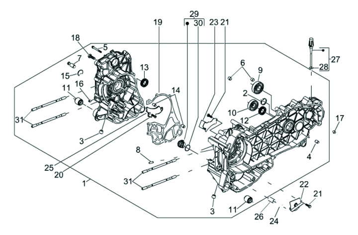 Crankcase gasket -PIAGGIO- Vespa GT 250 (ZAPM45102), Vespa GT L 125 (ZAPM31101), Vespa GT L 200 (ZAPM31200), Vespa GTS 125 (ZAPM31300), Vespa GTS 250 (ZAPM45100, ZAPM45101), Vespa GTS 300 (ZAPM45200, ZAPM45202, ZAPMA3300), Vespa GTS HPE 300 (ZAPMD310), Ve
