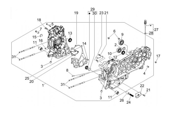 Crankcase gasket -PIAGGIO- Vespa GT 250 (ZAPM45102), Vespa GT L 125 (ZAPM31101), Vespa GT L 200 (ZAPM31200), Vespa GTS 125 (ZAPM31300), Vespa GTS 250 (ZAPM45100, ZAPM45101), Vespa GTS 300 (ZAPM45200, ZAPM45202, ZAPMA3300), Vespa GTS HPE 300 (ZAPMD310), Ve