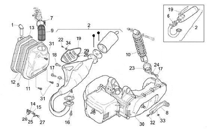 Exhaust -SITO- Aprilia SR50 Stealth, SR Racing (-1999), SR50 AC/LC (1994-97), SR 50 Netscaper, SR 50 WWW, Rally AC/LC