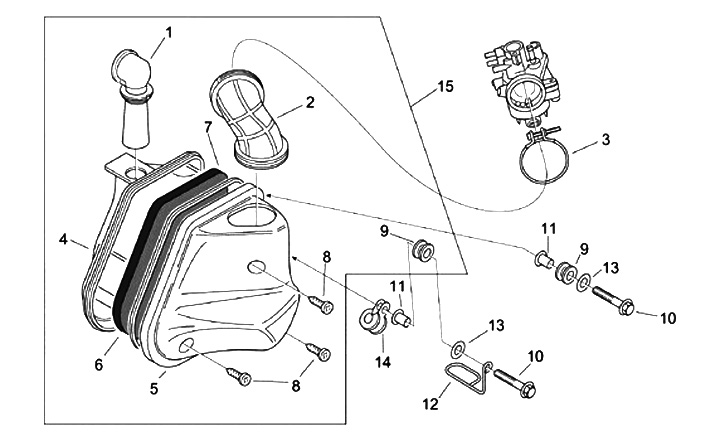 Air intake hose -APRILIA- Minarelli horizontal - Yamaha Aerox (YQ50/L, 2-stroke), MBK Nitro (YQ50/L, 2-stroke), Aprilia SR50 (used as manifold / bellow between carburettor and filter box)