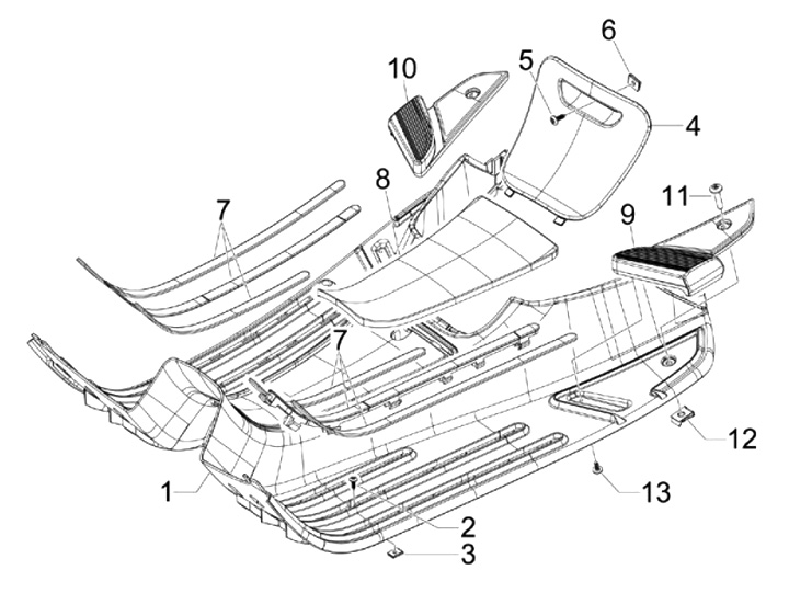 Foot board -PIAGGIO- Vespa LX (ZAPC38, ZAPM44,ZAPM68), Vespa LXV (ZAPC38, ZAPM44,ZAPM68), Vespa S (ZAPC38, ZAPM44,ZAPM68)