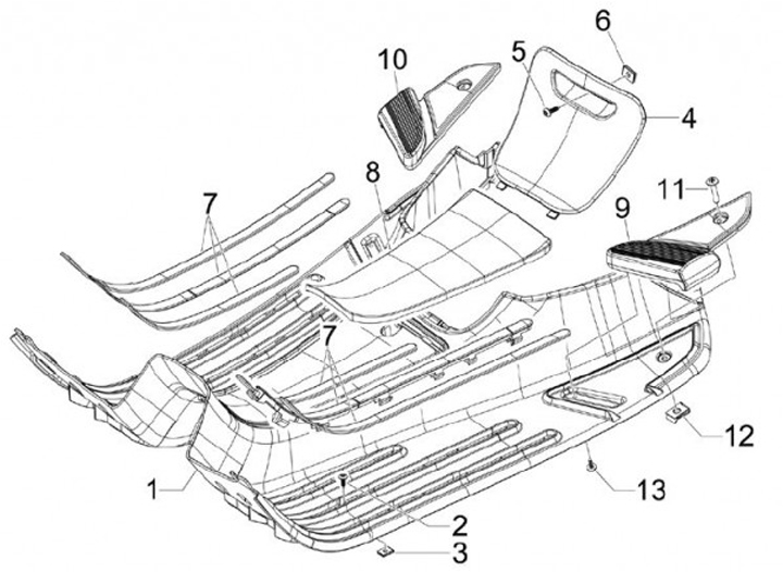 Central floor mat -PIAGGIO- Vespa LX (ZAPC38, ZAPM44,ZAPM68), Vespa LXV (ZAPC38, ZAPM44,ZAPM68), Vespa S (ZAPC38, ZAPM44,ZAPM68)
