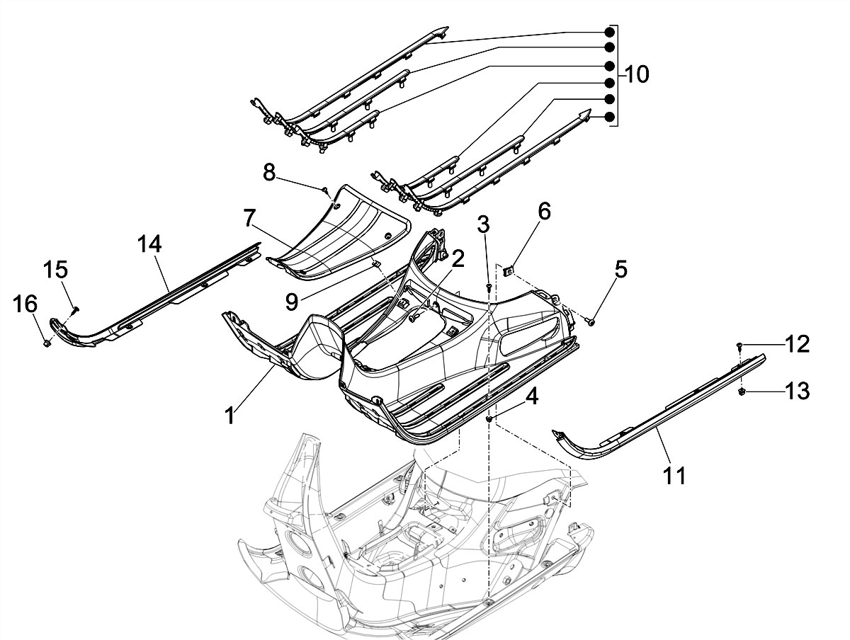 Floor board beading lhs, matt black -PIAGGIO- Vespa GTV HPE 300 RST 2023 Euro 5 keyless ABS 4T 4V LC (ZAPMD3108)