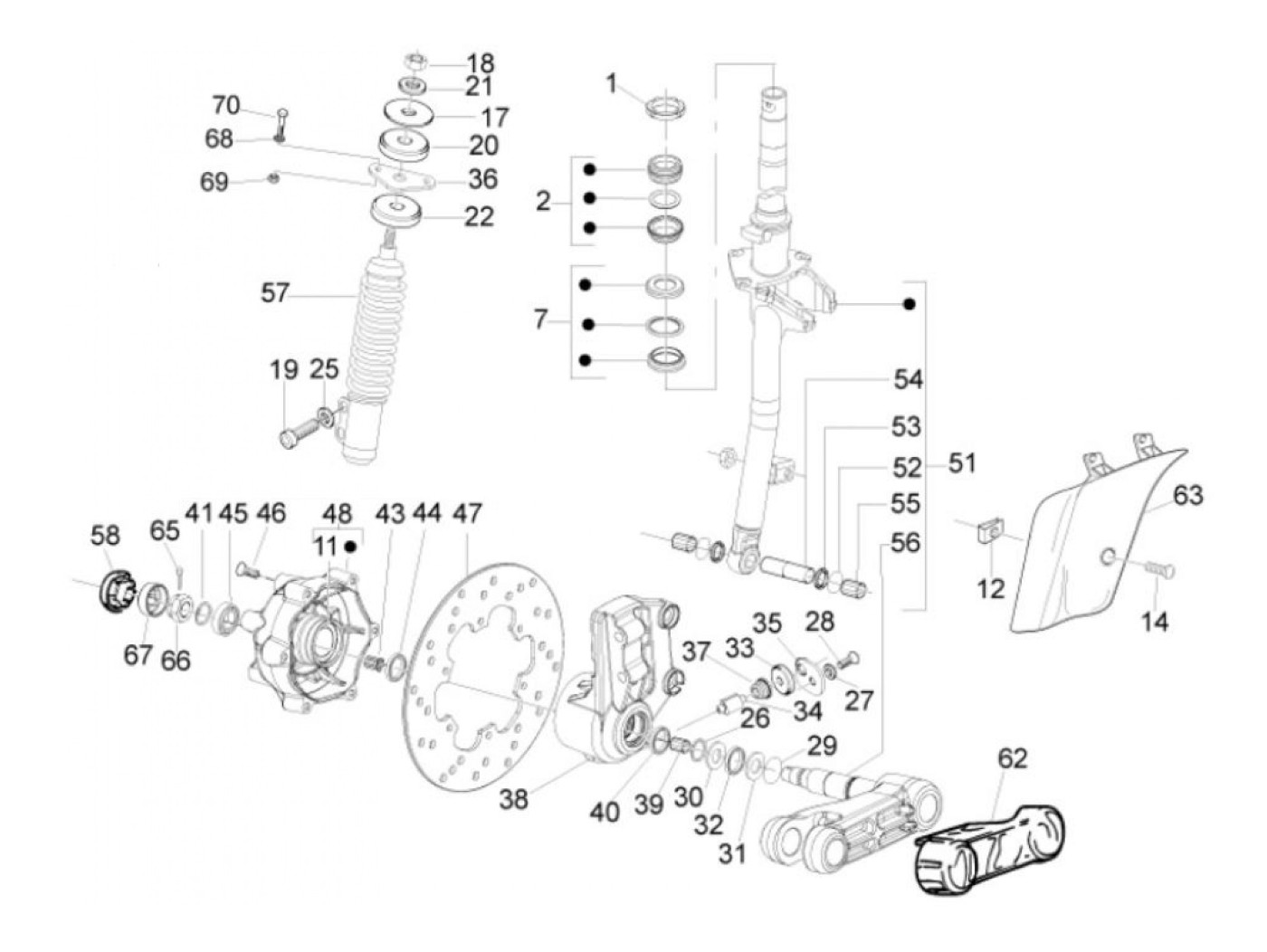 Fork link cover -PIAGGIO, straight fork link- Vespa GT 125 (ZAPM31100), Vespa GT 200 (ZAPM31200), Vespa GT 60 (ZAPM45102), Vespa GT L 125 (ZAPM31101), Vespa GT L 200 (ZAPM31200), Vespa GTS 125 (ZAPM31300, ZAPMA3100), Vespa GTS 125 i.e. Super (-2014, 2016-