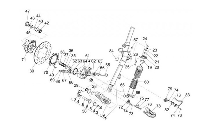 Fork -PIAGGIO- Vespa GTS 300 (ZAPM45200, ZAPM45202), Vespa GTS Super 125 (ZAPM45300, ZAPM45301), Vespa GTS Super 300 (ZAPM45200, ZAPM45202), Vespa GTS Super Sport 125 (ZAPM45300), Vespa GTS Super Sport 300 (ZAPM45200)