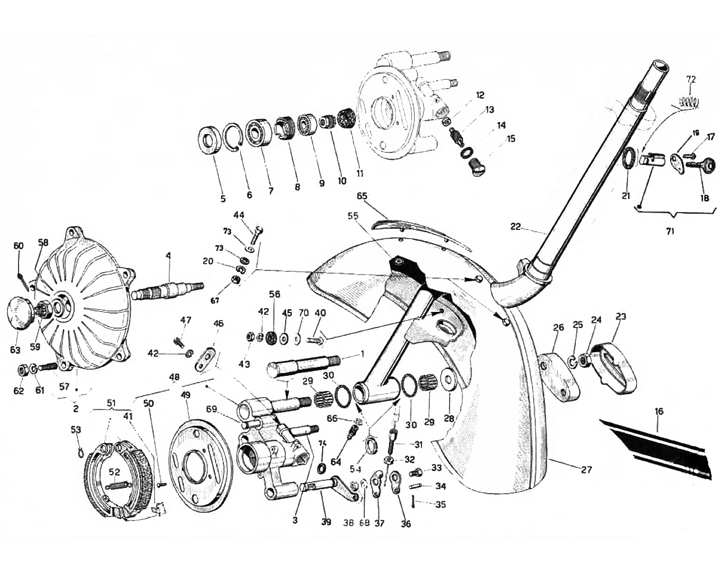 Brake shoes -VESPA Ø=125x17mm- 8 + 9 + 10 front, 1 anchor pin, Vespa Smallframe V50, V90, SS50, SS90, PV125, ET3, Wideframe V1T-V15T, V30T-V33T, VM, VN, VL, VB, VNA, VNB, VBA, VBB, Super