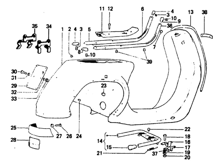 Mudguard crest mounting bush -VESPA- Vespa PX80-200, Sprint 50-150, Primavera 50-150, LX50-150, S50-150, GTS 125-300