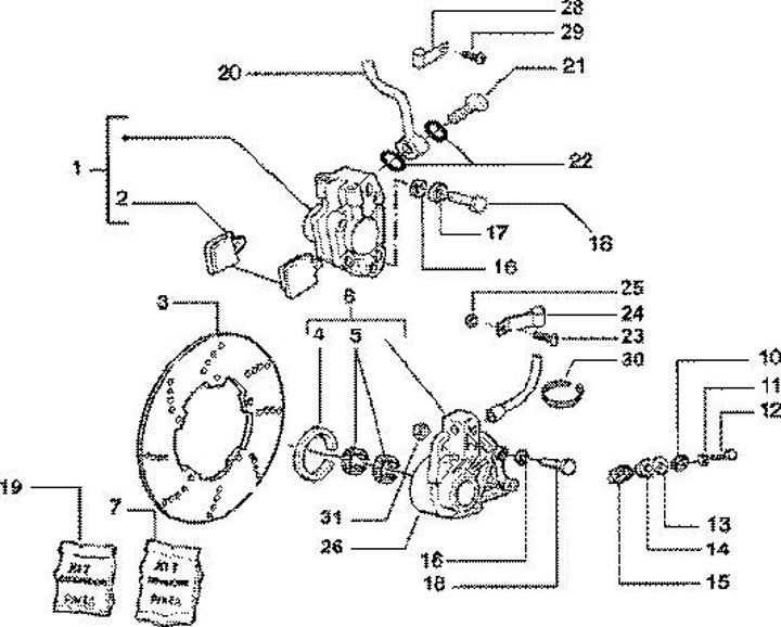 Brake caliper, front -PIAGGIO- Vespa Primavera 125 (RP8M82500, RP8M82821, RP8M82100, RP8M82310), Vespa Primavera 50 (ZAPCA0100, ZAPCA0200, ZAPCA0102, ZAPCA0202, ZAPCD020, ZAPCD010), Vespa Sprint 50 (ZAPCA0101, ZAPCA0201, ZAPCA0103, ZAPCA0203, ZAPCAV6B, ZA
