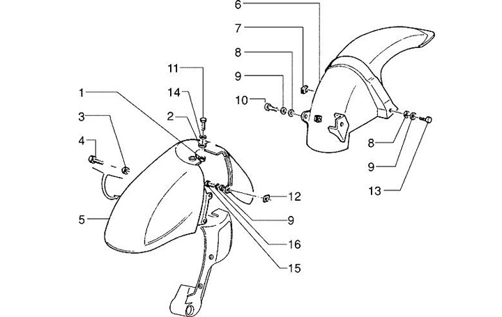 Front mudguard - rear mudguard