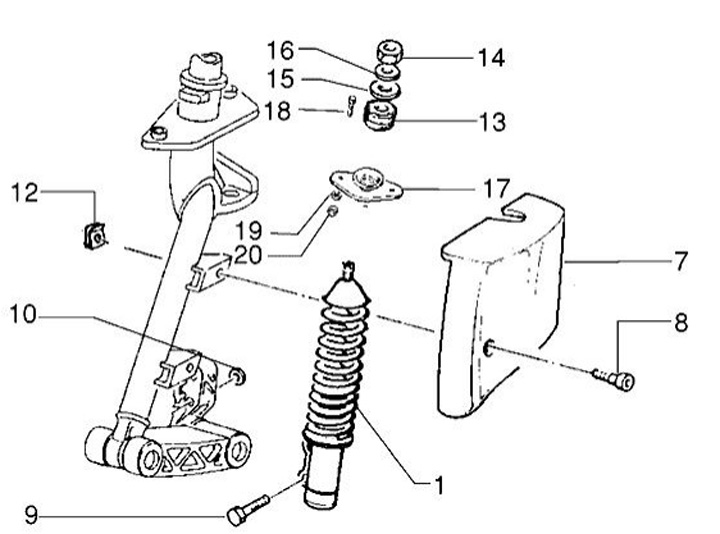 Washer silent rubber/front shockabsorber -PIAGGIO- Vespa PX80, PX125, PX150, PX200, T5 125cc, Cosa, PK S-XL, GT-GTV, LX-LXV, ET2, ET4, S, Piaggio Zip SP, Hexagon, MP3, Quartz, SKR, Gilera Fuoco
