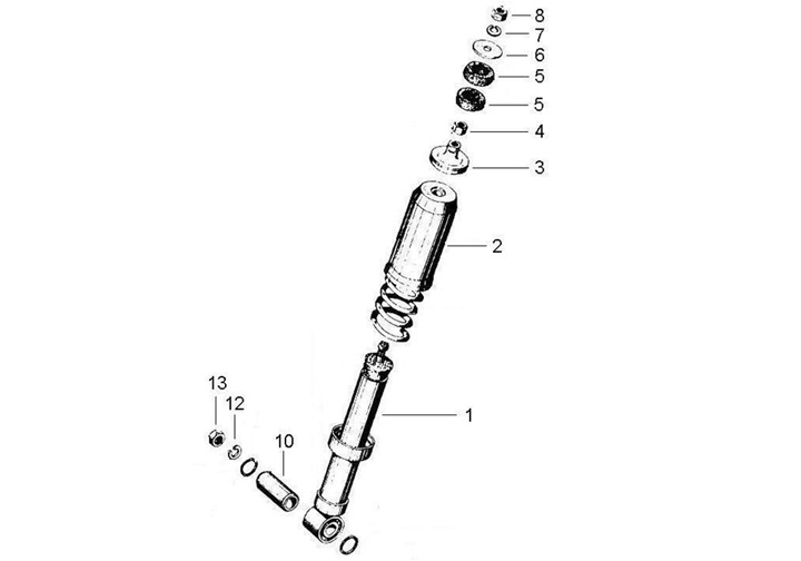 Shock absorber front -YSS Pro-X, 210mm- Vespa ET2, ET4, LX, LXV, S, Piaggio Quartz, SKR, Sfera, Sfera RST, Zip SP, Zip (since 2000) - black spring