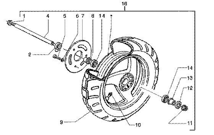 Front axle -PIAGGIO- Piaggio NRG (till 1996 - SAL1T), NTT (till 1996 - SAL1T), Storm (till 1996 - TEC1T), TPH (till 1996 - TEC1T)
