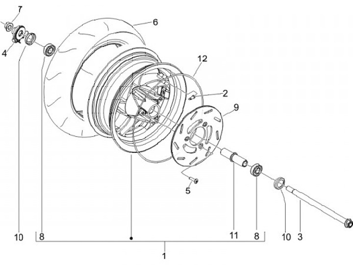 Front axle -PIAGGIO- Piaggio NRG (till 1996 - SAL1T), NTT (till 1996 - SAL1T), Storm (till 1996 - TEC1T), TPH (till 1996 - TEC1T)