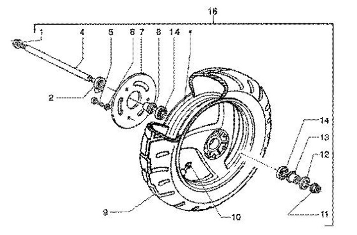 Front axle -PIAGGIO- Piaggio NRG (till 1996 - SAL1T), NTT (till 1996 - SAL1T), Storm (till 1996 - TEC1T), TPH (till 1996 - TEC1T)