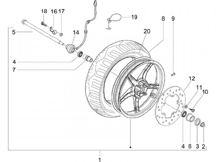 Front axle -PIAGGIO- NRG Power (ZAPC45), Gilera Runner (since 2006) (ZAPC46, ZAPM46)