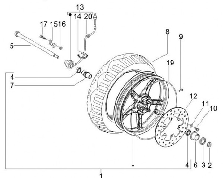 Front axle -PIAGGIO- NRG Power (ZAPC45), Gilera Runner (since 2006) (ZAPC46, ZAPM46)