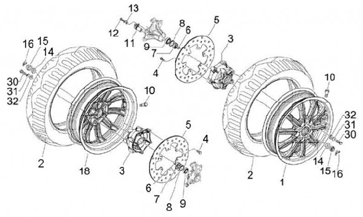 Front wheel hub -PIAGGIO- Vespa GTS 125 (ZAPMA3100, ZAPMA3200, ZAPMA3700), Vespa GTS 150 (ZAPMA3200, ZAPMA3100), Vespa GTS 250 (ZAPM45100), Vespa GTS 300 (ZAPM45200, ZAPM45202, ZAPMA3300), Vespa GTS HPE 300 (ZAPMA3600, ZAPMD310), Vespa GTS Super 125 (ZAPM