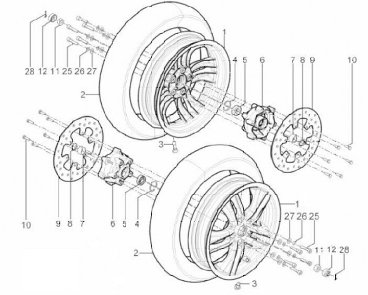 Front wheel hub -PIAGGIO- Vespa GTS 125 (ZAPMA3100, ZAPMA3200, ZAPMA3700), Vespa GTS 150 (ZAPMA3200, ZAPMA3100), Vespa GTS 250 (ZAPM45100), Vespa GTS 300 (ZAPM45200, ZAPM45202, ZAPMA3300), Vespa GTS HPE 300 (ZAPMA3600, ZAPMD310), Vespa GTS Super 125 (ZAPM