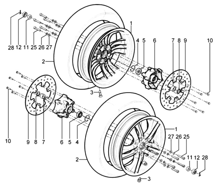 Front wheel hub -PIAGGIO- Vespa GTS 125 (ZAPMA3100, ZAPMA3200, ZAPMA3700), Vespa GTS 150 (ZAPMA3200, ZAPMA3100), Vespa GTS 250 (ZAPM45100), Vespa GTS 300 (ZAPM45200, ZAPM45202, ZAPMA3300), Vespa GTS HPE 300 (ZAPMA3600, ZAPMD310), Vespa GTS Super 125 (ZAPM
