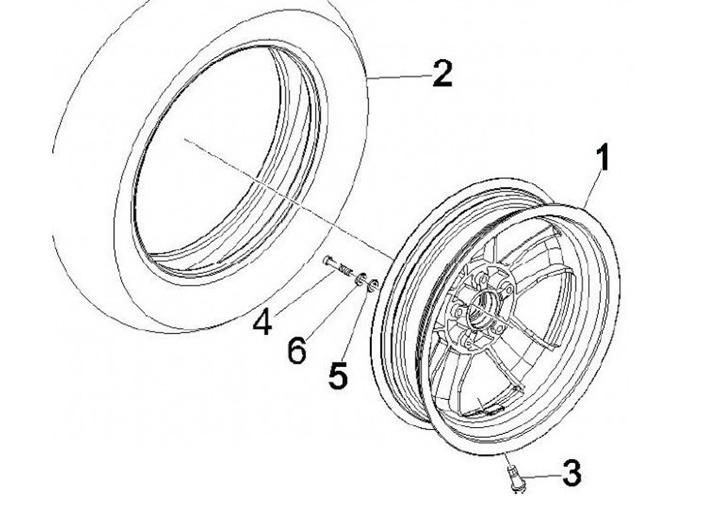 Wheel rim -PIAGGIO Super - mat black with polished border, (3.00x12)inch - 5 spokes- Vespa GT, GTL, GTS, GTV 125-300cc - fits front and rear (2014-2016)