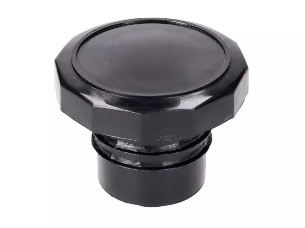 Black plastic fuel cap with dodecagonal head suitable for Puch moped with corresponding tank nozzle such as Puch Maxi S, N.