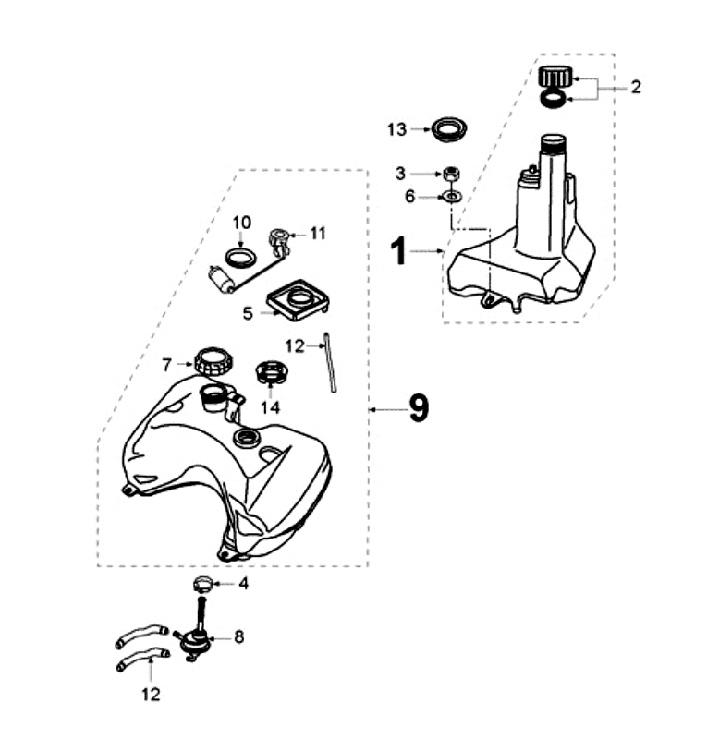 Tank und Benzinpumpe