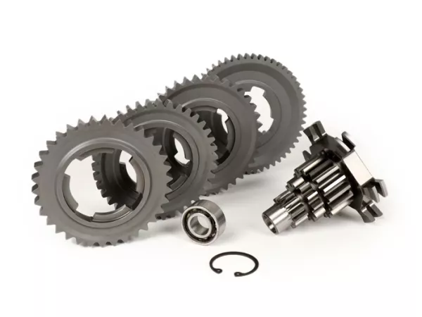 Benelli offers three differently stepped secondary shafts (values that differ from the original gearbox shown in bold):