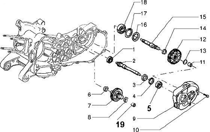 Rear wheel shaft -PIAGGIO- VESPA ET2 iniezione, PIAGGIO 125 cc 4-stroke (1st generation), NRG 50 (SAL), TPH 50 (TEC1T), GILERA Storm 50 (TEC1), Stalker 50 (C13) - 49 teeth, Ø 12mm, 146mm, pressed gear wheel