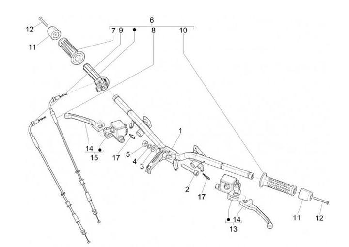Throttle grip and throttle cables -PIAGGIO- Vespa GTS 250 (ZAPM45100), Vespa GTS 300 (ZAPM45200, ZAPM45202), Vespa GTS Super 125 (ZAPM45300, ZAPM45301), Vespa GTS Super 300 (ZAPM45200, ZAPM45202)