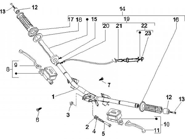 Handlebar -PIAGGIO- Gilera Runner 125 (ZAPM24200, ZAPM24100, ZAPM46100, ZAPM24000, ZAPM07000, ZAPM46300, ZAPM46301), Gilera Runner 180 (ZAPM08000), Gilera Runner 200 (ZAPM24300, ZAPM46200, ZAPM46400, ZAPM46401), Gilera Runner 50 (ZAPC46100, ZAPC46200, ZAP