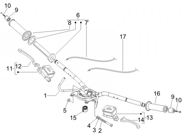 Handlebar -PIAGGIO- Vespa GT 250 (ZAPM45102), Vespa GTV 125 (ZAPM31301), Vespa GTV 250 (ZAPM45102), Vespa GTV 300 (ZAPM45201)