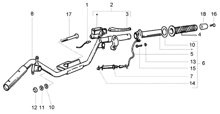 Handlebar -PIAGGIO- Gilera Runner 125 (ZAPM24200, ZAPM24100, ZAPM46100, ZAPM24000, ZAPM07000, ZAPM46300, ZAPM46301), Gilera Runner 180 (ZAPM08000), Gilera Runner 200 (ZAPM24300, ZAPM46200, ZAPM46400, ZAPM46401), Gilera Runner 50 (ZAPC46100, ZAPC46200, ZAP