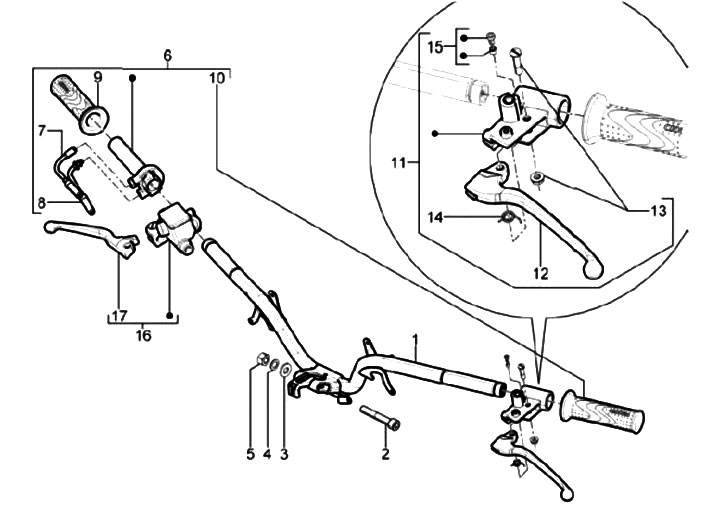 Handlebar -PIAGGIO- Piaggio TPH 125 (LBMM70100), Piaggio TPH 50 (LBMC50100, LBMC50101), Aprilia Sport City One 125 (ZD4SG000, ZD4SG, ZD4SGC00), Aprilia Sport City One 50 (ZD4SB000, ZD4SBA00, ZD4SBC00, ZD4SBE00, ZD4SBB00), Aprilia SR Motard 125 (LBMM70300)