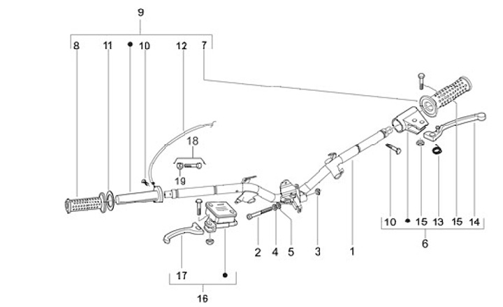Handlebar -PIAGGIO- Piaggio TPH 125 (LBMM70100), Piaggio TPH 50 (LBMC50100, LBMC50101), Aprilia Sport City One 125 (ZD4SG000, ZD4SG, ZD4SGC00), Aprilia Sport City One 50 (ZD4SB000, ZD4SBA00, ZD4SBC00, ZD4SBE00, ZD4SBB00), Aprilia SR Motard 125 (LBMM70300)